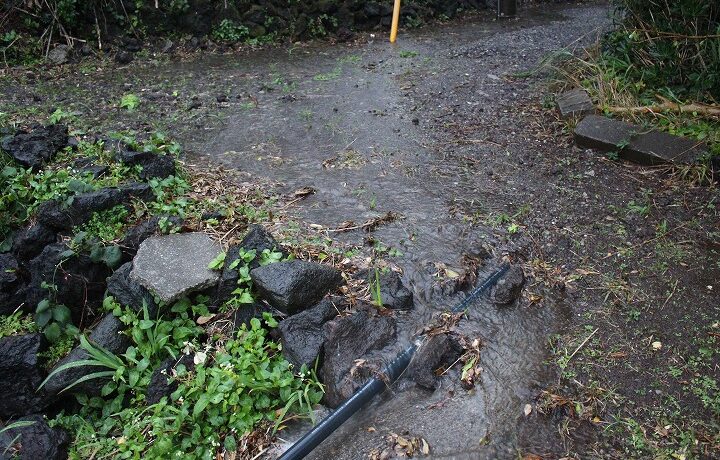 今日の画像は午前6時57分。今朝の八丈富士と神湊漁港です。今朝は雨です。