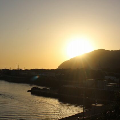 今日の画像は午前4時59分。今朝の八丈富士と神湊漁港です。