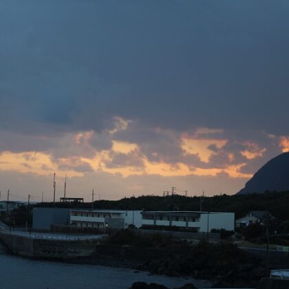 今日の画像は午前6時04分。今朝の八丈富士と神湊漁港です。