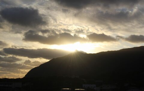 今日の画像は午前6時42分。今朝の八丈富士と神湊漁港です。