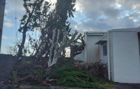 今日の画像は午前7時29分。今朝の八丈富士と神湊漁港です。今朝は雨です。