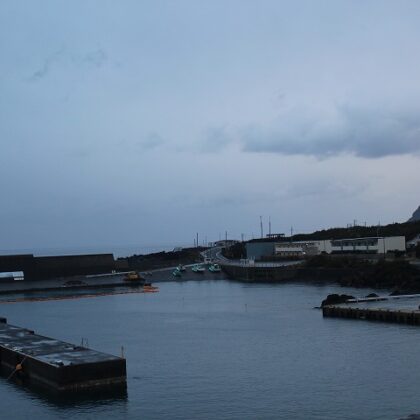 今日の画像は午前6時38分。今朝の八丈富士と神湊漁港です。今朝は雨上がりの朝です。