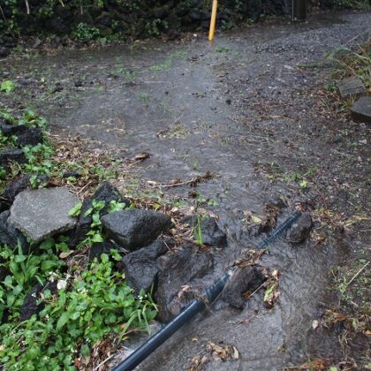 今日の画像は午前6時47分。今朝の八丈富士と神湊漁港です。今朝はくもり。風の強い朝です。