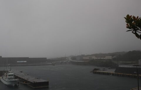 今日の予報は、雨昼前からくもり 南西の風非常に強くのち西の風強く 波6mのち5mうねりを伴う 最高気温16度です。