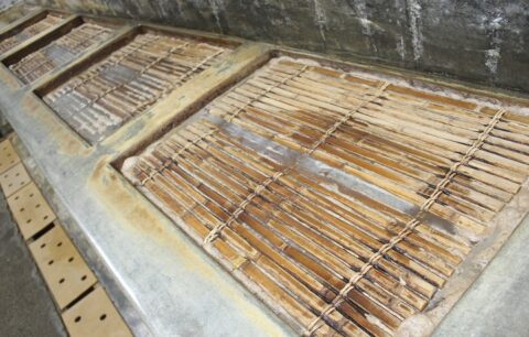 撹拌棒で竹蓋を押し込むと