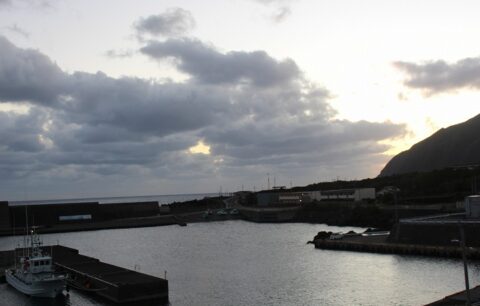 今日の予報は、くもり朝から昼過ぎ雨所により夕方まで雷を伴う 南西の風やや強くのち西の風やや強く 波2.5mのち1.5mうねりを伴う 最高気温15度です。今朝の飛行機、定期船共に順調です。