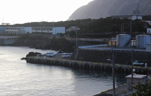 今日の画像は午前6時22分。今朝の八丈富士と神湊漁港です。今朝は風が出てきましたね。