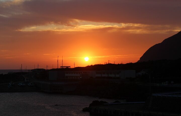 今日の画像は午前6時03分。今朝の八丈富士と神湊漁港です。今朝も晴れです。