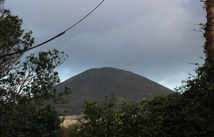 今日の画像は午前6時22分。今朝の八丈富士と神湊漁港です。