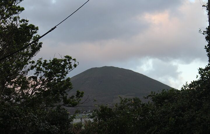 今日の画像は午前6時38分。今朝の八丈富士と神湊漁港です。今朝は風強く寒いですね。