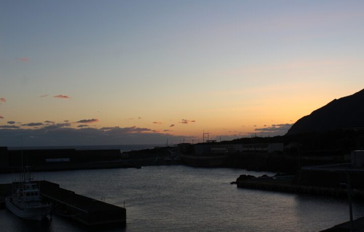 今日の予報は、晴れ時々くもり 西の風のち南西の風 波2mのち1.5mうねりを伴う 最高気温19度です。今朝の飛行機、定期船共に順調です。