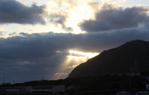 今日の予報は、晴れ昼前からくもり 北の風やや強くのち東の風 波2mのち2.5mうねりを伴う 最高気温16度です。今朝の飛行機、定期船共に順調です。
