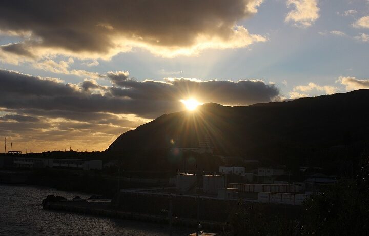 今日の画像は午前7時21分。今朝の八丈富士と神湊漁港です。ようやく朝日が!