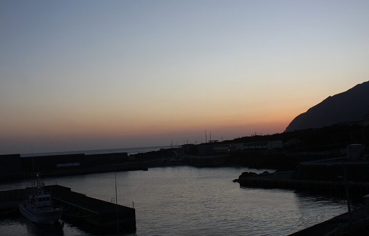 今日の画像は午前6時37分。今朝の八丈富士と神湊漁港です。今朝も晴れですね。