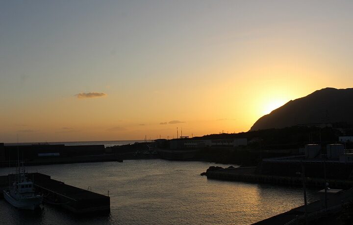 今日の画像は午前7時02分。今朝の八丈富士と神湊漁港です。今朝も晴れです。